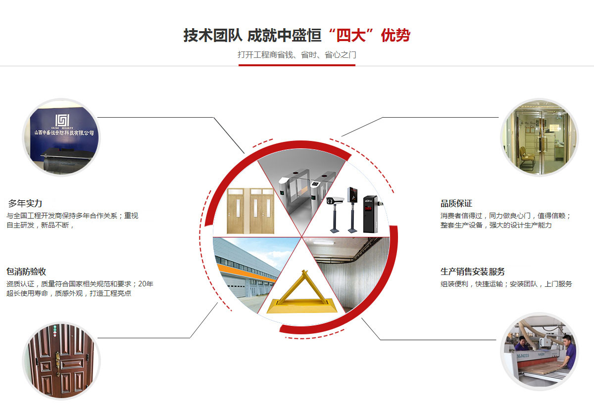 山西中盛恒安防科技有限公司成立于2010年,地處人杰地靈的山西省省會——太原市,公司注冊資金200萬元人民幣,從事自動旋轉(zhuǎn)門、伸縮門、卷簾門、車庫門、工業(yè)門、防火門、防爆門、防盜門、智能樓宇系統(tǒng)及建筑幕墻、門窗、綜合裝飾工程,是集科研開發(fā)、設(shè)計(jì)、施工、售后服務(wù)于一體的綜合性股份制企業(yè)。